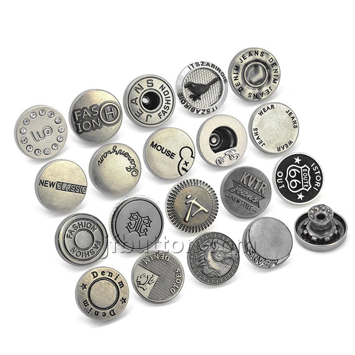 ปุ่มกางเกงยีนส์ที่เคลื่อนย้ายได้กลวง:ใช้สำหรับเสื้อผ้าที่ต้องเปลี่ยนปุ่มหรือเพิ่มความสะดวกสบาย .
